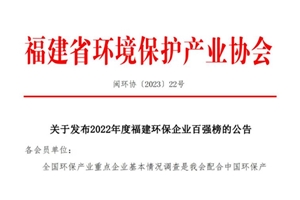 2022年度福建环保企业百强榜发布,yl34511线路中心位列第三