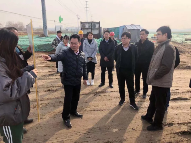 12月28日下午,汶上县考核办主任胡理平、寅寺镇党委副书记吕品、常务副镇长姬长宽等领导来yl34511线路中心汶上项目施工现场调研。