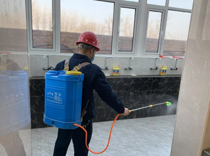 鄄城项目加强了门卫管理机制,配置红外温度检测,对所有返厂人员的体温、身体状况、有无经停或居住在疫情重点区域等情况做详细了解,并记录;严格监督食堂工作人员身体状况,从源头上杜绝食物污染、病毒传播现象的发生;食堂实行统一分餐制,避免排队、聚集用餐;每天进行两次厂区全覆盖、无死角消毒,为员工们牢牢筑起一道防疫之墙。
