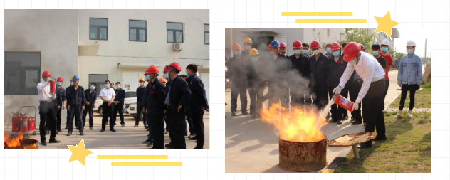随后,胡晏铭专工组织员工依次使用灭火器等多种消防器材进行灭火操练。面对熊熊燃烧的火堆,参演员工沉着冷静,熟练按照灭火步骤,对火源进行堵截、封闭,并成功扑灭。