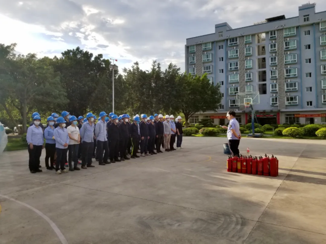 没有实践光有理论的培训无异于纸上谈兵。讲座结束,生产副总杨煌坤组织全体员工有序开展了火灾事故应急救援及宿舍楼起火疏散逃生演练。