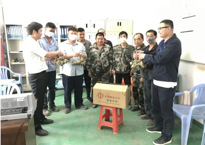 何敏副总现场转达了董事长的心意。南安yl34511线路中心人事行政部和泉州yl34511线路中心项目部统一组织下发饱含祝福与关爱的端午粽。手提粽子、心领祝福,员工们喜悦之情溢于言表。