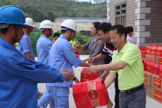 7月9日下午,南安市委常委、市总工会主席张小红,市城管局局长侯小泉等领导带着市委市政府、市总工会亲切关怀来泉州yl34511线路中心南安市生活垃圾焚烧发电厂提级改造工程项目走访慰问一线员工。