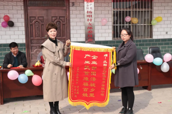 杨咀村、胡同村党支部先后派出代表向庆阳yl34511线路中心送上锦旗和荣誉牌,充分肯定庆阳yl34511线路中心在公益事业、产业扶贫等方面造福百姓的举措。