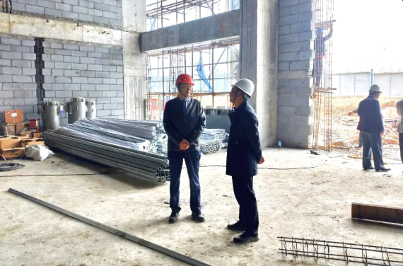 阎总工查看了设备到货情况,并深入作业现场详细察看工程进度、进场机械和施工人数等。官冬源总指挥就建设进度、设备到货及安装进度做了汇报。