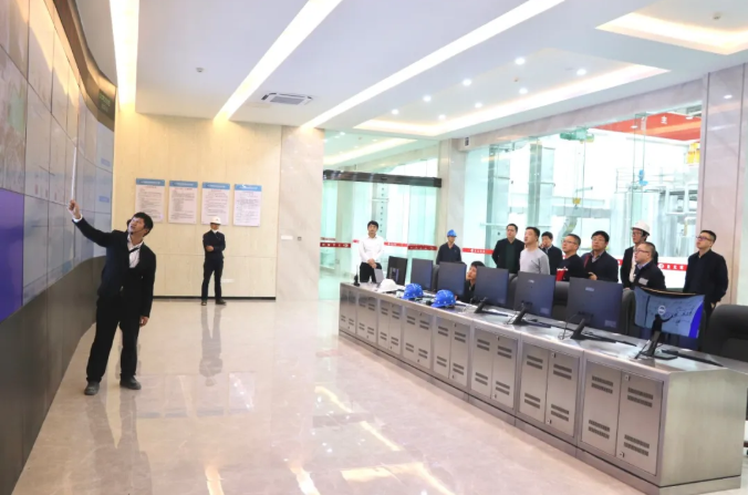考察组实地走访了餐厨项目生产现场、卸料大厅、环保宣导展厅等区域。在中控室,高永斌副局长通过中控大屏操作系统详细了解餐厨项目设计规划、工艺流程、餐厨垃圾收运系统及先进的自动化控制系统,询问了当地有关政策、各专业设备供应商和工程建设等情况,对项目采用先进工艺、技术及高水平、高质量的建设标准大加赞赏。