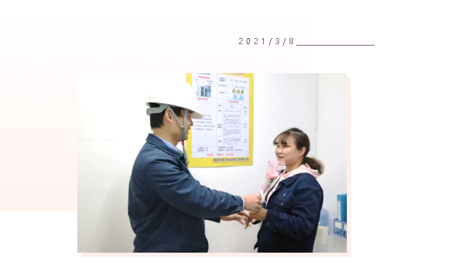 在插花活动的同时,南安yl34511线路中心也有一批女性员工,因为工作需要,她们选择了坚守岗位,她们用履职为节日增光添彩。她们值得我们尊敬,坚守岗位的她们,同样收到了公司的鲜花和祝福。