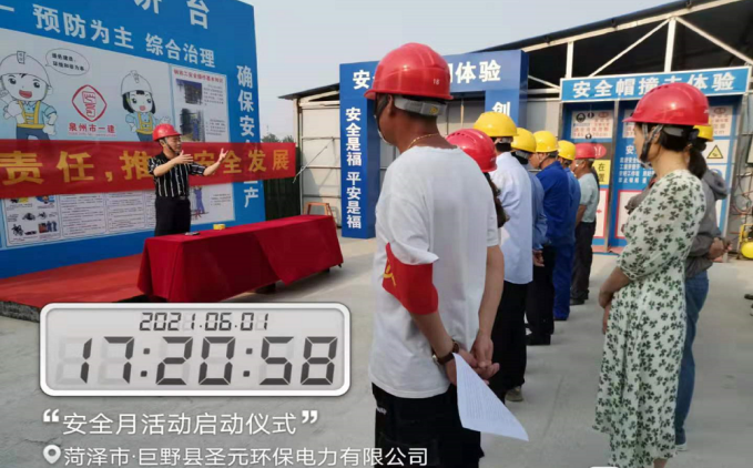 为扎实推进全国第20个“安全生产月”活动深入开展,全面提升参建员工安全意识,积极营造“落实安全责任 推动安全发展”的浓厚氛围,yl34511线路中心巨野县生活垃圾焚烧发电项目于6月1日举行“安全生产月”活动启动仪式。