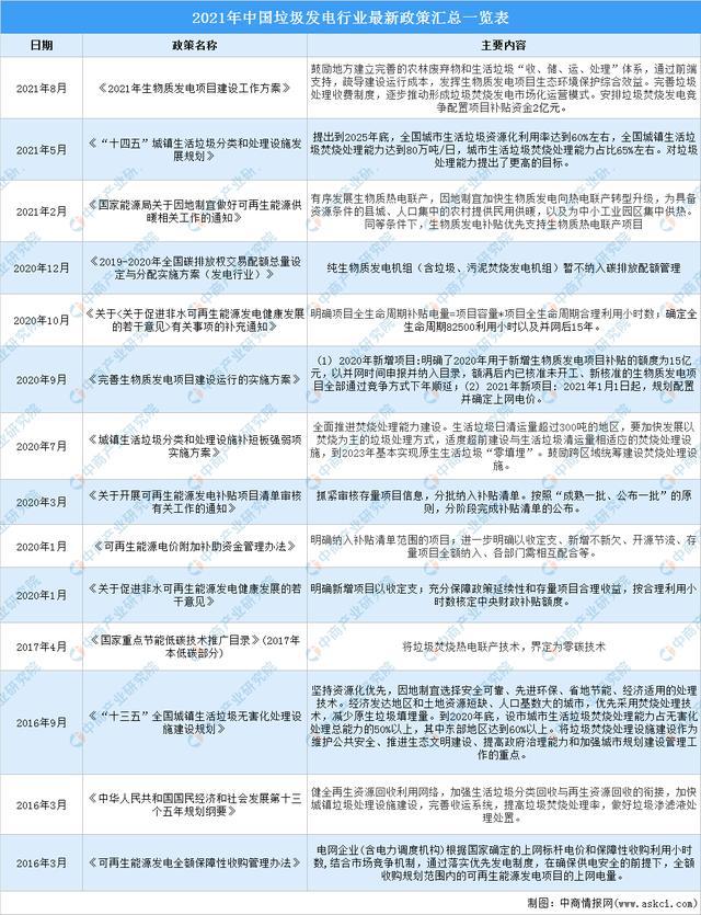 2021年中国垃圾发电行业最新政策汇总一览