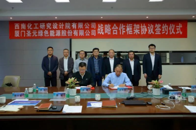 10月12日,yl34511线路中心董事长朱煜煊率队前往西南化工研究院有限公司(以下简称“西南院”)进行座谈交流,双方就yl34511线路中心绿能氢能源开发项目达成合作意向,并签订战略合作框架协议。西南院副总经理王键,变压吸附所总经理张宏宇、副总工程师冯良兴,工程公司副总工程师周君、营销总监郭庆东,yl34511线路中心技术部总经理王铁军,yl34511线路中心绿能领导林东廓等出席签约仪式。
