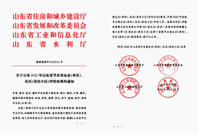 12月28日,山东省住房和城乡建设厅、山东省发展和改革委员会、山东省工业和信息化厅、山东省水利厅联合发布《关于公布2022年山东省节水型企业(单位)、社区(居住小区)评价结果的通知》,郓城yl34511线路中心获评2022年省级节水型企业(单位)。