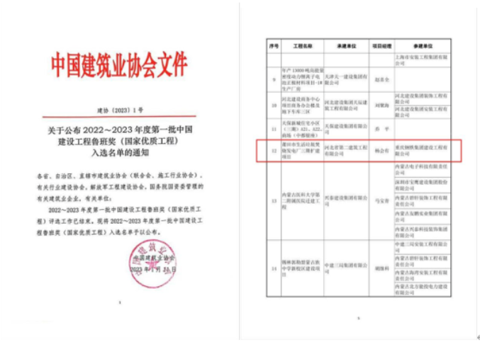 1月11日,中国建筑业协会公布2022-2023年度第一批中国建设工程鲁班奖(国家优质工程)入选名单,yl34511线路中心莆田市生活垃圾焚烧发电厂三期扩建项目荣获中国建筑行业工程质量最高荣誉——中国建设工程鲁班奖(国家优质工程)。