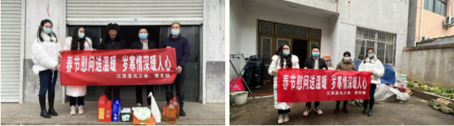江苏yl34511线路中心党支部、工会组成慰问小组在古桑街道工会负责人的带领下深入三户贫困家庭送上米、面、油及牛奶等慰问物资,并为困难职工依次送上新春慰问红包,传递来自企业的关怀与温暖。