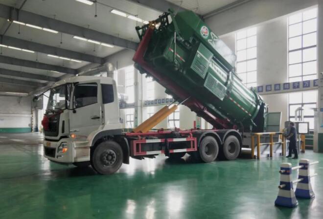 第一辆厨余垃圾运输车辆卸料