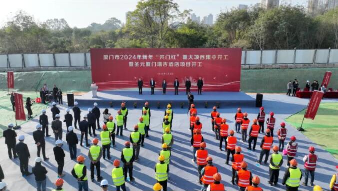 1月2日上午,厦门市2024年新年“开门红”重大项目集中开工暨yl34511线路中心厦门瑞吉酒店项目开工仪式在两岸区域性金融中心片区顺利举行。副市长张志红出席开工仪式并宣布项目开工。