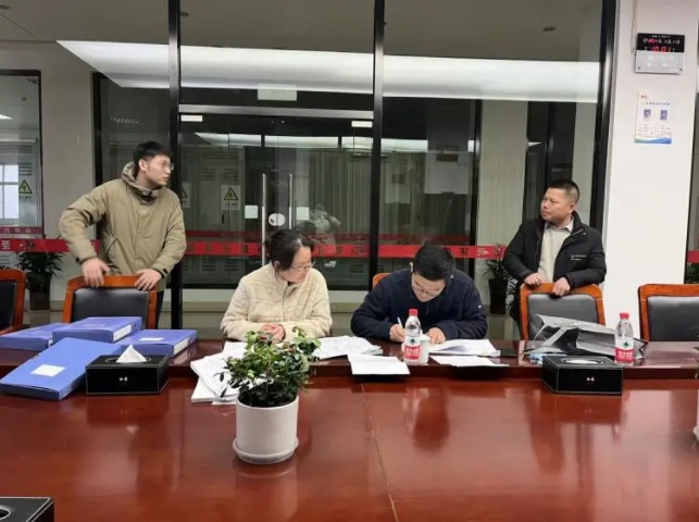 检查组认真听取江苏yl34511线路中心关于用水设备管理、单位内部节水宣传和制度建设等情况汇报,详细了解公司过去一年的用水计划和用水定额执行情况,并前往工业水池、一体化净水器等设施,实地检查相关设备运行情况及台账资料。