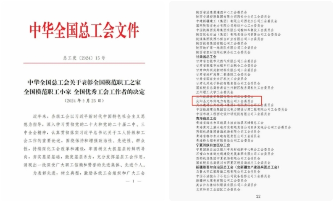 近日,中华全国总工会下发《关于表彰全国模范职工之家 全国模范职工小家 全国优秀工会工作者的决定》,庆阳yl34511线路中心电力有限公司工会委员会被授予“全国模范职工之家”称号。
