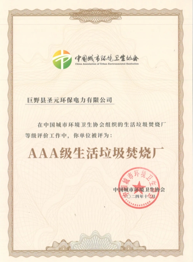 此次获评AAA级生活垃圾焚烧厂是对巨野yl34511线路中心过往工作的高度认可。公司将始终致力于推动城市生活垃圾减量化、无害化、资源化处置,积极贡献于地方绿色低碳高质量发展,助力实现国家生态文明建设和“双碳”战略目标。