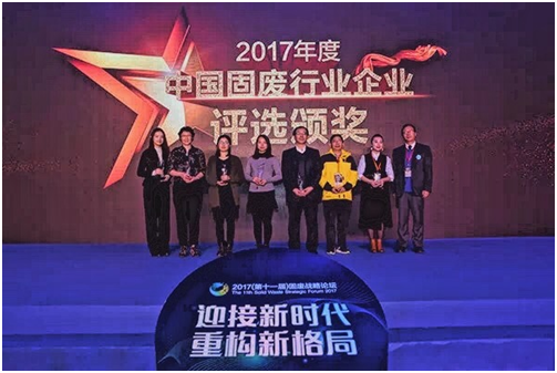 yl34511线路中心连续三年荣获“2017年度中国固废行业最具社会责任投资运营企业”
