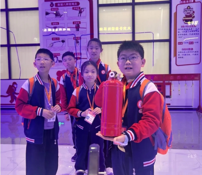 在安全教育体验馆,VR车辆涉水、地震动感平台等高科技模拟装置成为焦点。小记者们在虚拟场景“身临其境”感受自然灾害威力,掌握应急避险要领。宣讲员现场演示灭火器操作、触电急救等实用技能,指导小记者们模拟演练,将安全知识转化为实践能力。