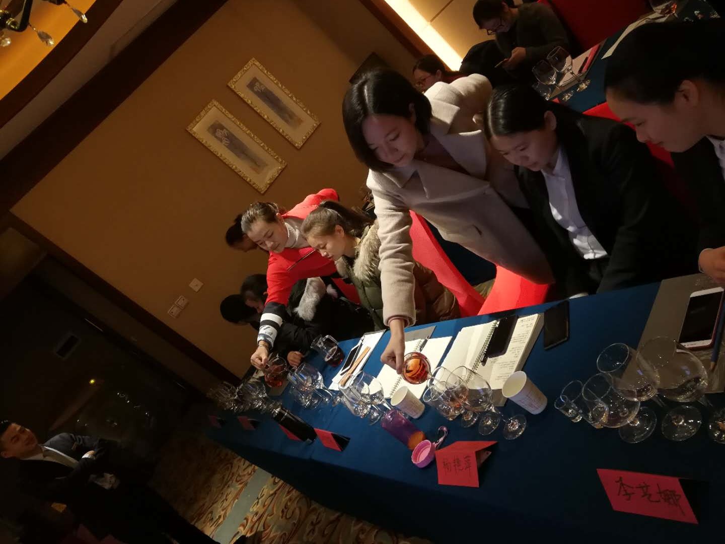 在实操环节,授课老师安排了丰富、生动、活泼的实操内容,主要有会议布置、西餐礼仪、中餐礼仪、咖啡调制、红酒品鉴等,参训人员听得津津有味。