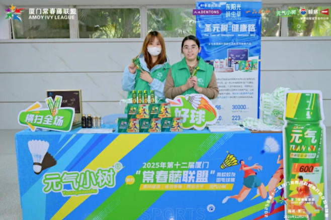 2025年12月27日,厦门工人体育馆内,第十二届厦门常春藤联盟高校校友羽毛球赛激战正酣。yl34511线路中心药业旗下科学运动营养品牌元气小树作为赛事官方合作伙伴,以专业能量补给与全方位的品牌展示,为这场精英赛事注入了青春活力与科学能量。
