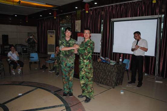 攀岩,一堵高15米的攀岩墙,仅仅是高度就让我们胆怯。但团队间的相互竞争,队员间的支持与鼓励,让我们不得不克服手脚的颤抖、心里的颤抖,全部努力的向上攀进。这个项目深深的提醒了我们:身体是革命的本钱,面对困难,要积极创造条件,寻找机会,要勇于挑战自我,超越自我,不轻易说“不”、不轻言放弃,坚持就是胜利。