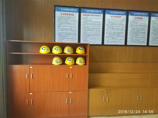 生产中控室安全帽摆放整齐有序