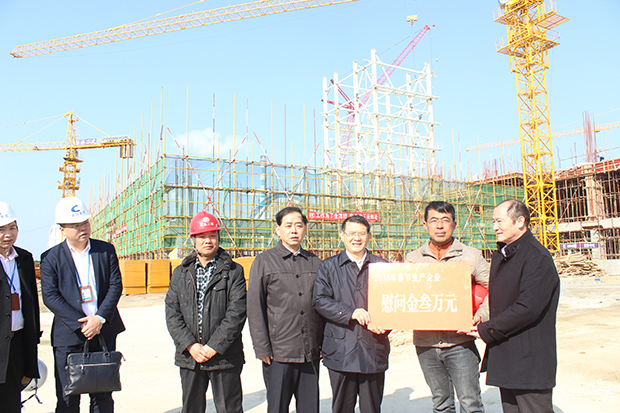 翁玉耀市长说,因为你们的辛勤付出,莆田市的生活环境现在日益清洁。新春佳节来临之际,也是垃圾电厂工作最为忙碌的时候,希望今后全体员工能够一如既往做好城市的垃圾处理工作,切实加快三期建设进度,早日投产,彻底解决莆田城市的垃圾处理难题,将城市装扮得更加美丽,真正将该项工程变成名副其实的民生工程。感谢公司一线职工,能够舍小家,为大家,在春节期间坚守岗位,为全市人民度过一个祥和的春节作出贡献,并当场送上3万元的慰问金。