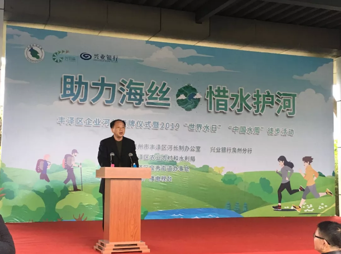 活动伊始,丰泽区曾国家副区长致辞。曾副区长指出:河道治理是一项长期工作,要打赢治水攻坚战,不仅需要政府出力,也需要调动社会各方力量,引导企业参与,形成治水合力,全面强化水资源管理。