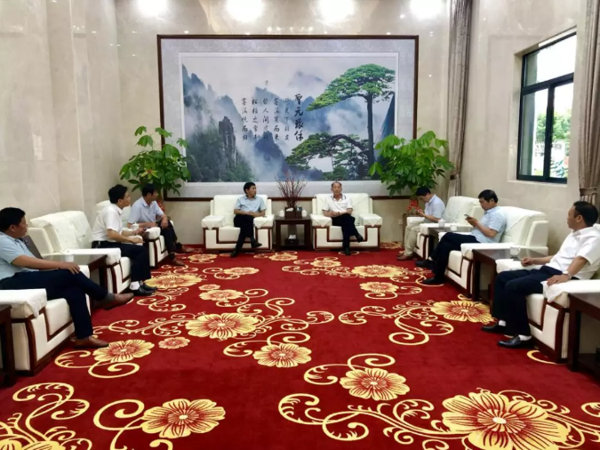 6月5日下午,安徽省天长市张铺镇镇长李训谦一行来yl34511线路中心参观考察,朱煜煊董事长会见了来宾。