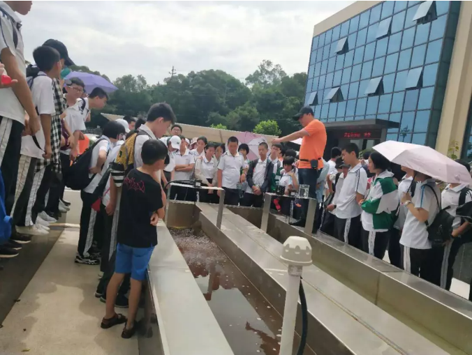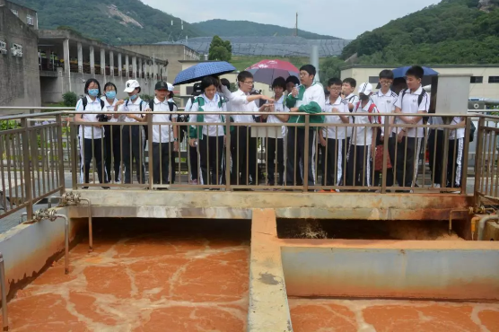 6月7日上午,泉州环境卫生管理处许景源主任引领实验中学50多名学生走进yl34511线路中心室仔前垃圾渗滤液处理厂。