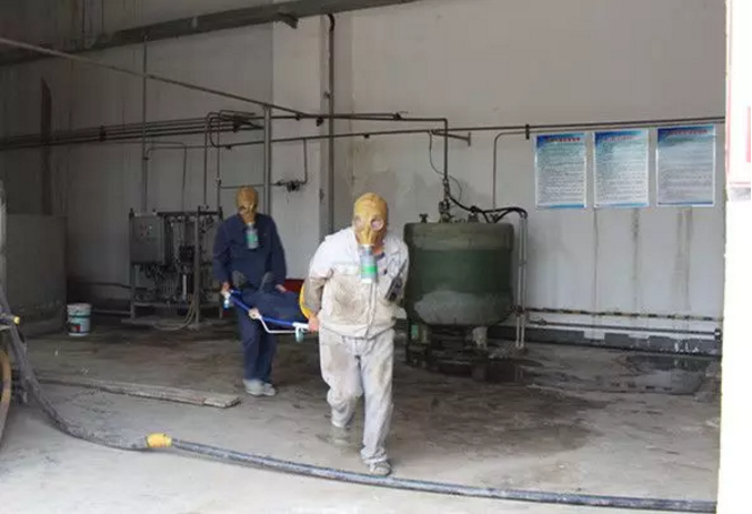 随即,抢救组救援人员佩戴半面式滤毒罐,使用担架将中毒人员抬到安全地带,让其休息恢复。疏散组救援人员佩戴防毒面具,对事故现场周围半径50米范围内所有人员进行疏散,并拉设警戒线,对泄漏部位进行勘察堵漏。