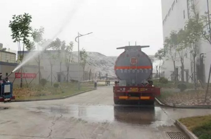 使用洒水车高压喷头对泄漏氨水进行稀释