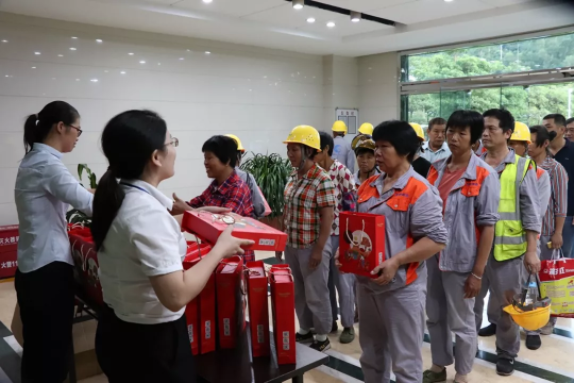 此外,公司也为物业承包单位——泉州市圣明物业公司的每一位员工发放月饼,感谢圣明物业维护厂区卫生,让厂区拥有美丽环境,借此中秋佳节到来之际,祝愿他们中秋节快乐!月圆人团圆事事圆满!
