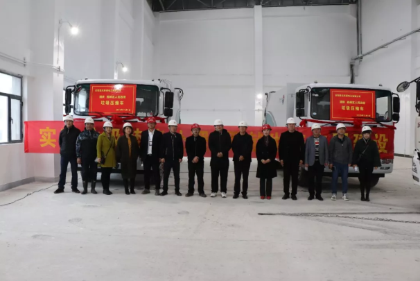 10点30分,厂区另一边,四辆垃圾运输车依次驶上栈桥。在垃圾接收大厅,葛鹏程局长代表环卫部门宣布垃圾进场,四辆垃圾运输车同时启动,将垃圾倾倒进垃圾储坑。随后,葛鹏程局长一行代表市容环境卫生管理局接收yl34511线路中心提供的垃圾压缩车,并在接收大厅与庆阳项目工作人员合影留念。